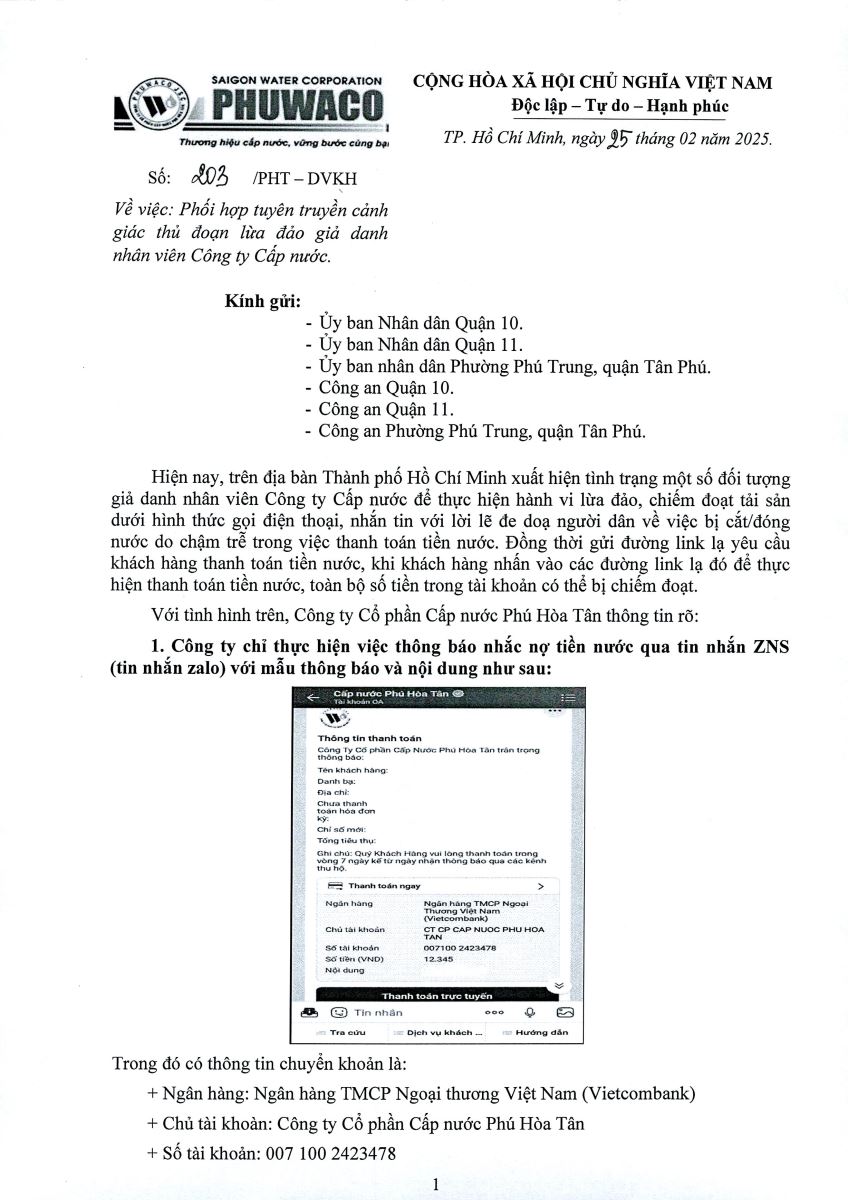 Cảnh giác thủ đoạn lừa đảo giả danh nhân viên Công ty Cấp nước